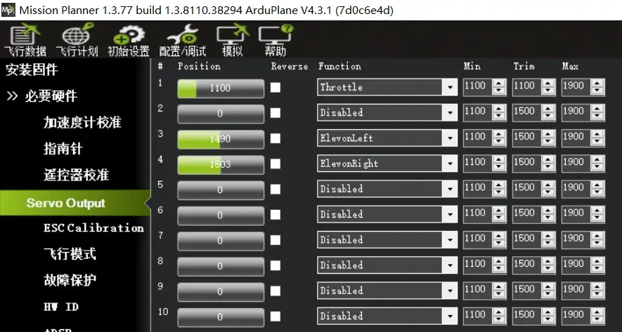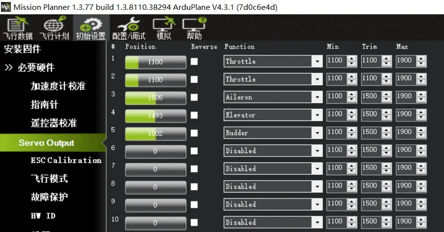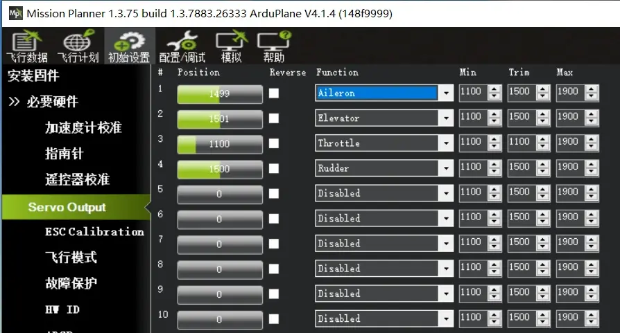 4:定义PWM通道输出与飞机舵面方向校准指导 Ardupilot固件对PWM的输出支持完全自定义,默认参数为常规布局的AETR模式,如下图
