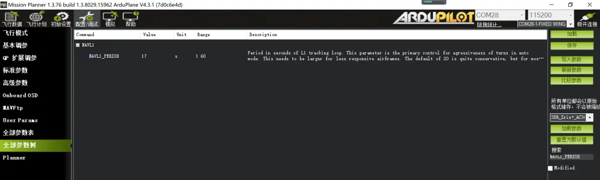 NAVL1_PERIOD 40 盘旋一圈时间,默认17s