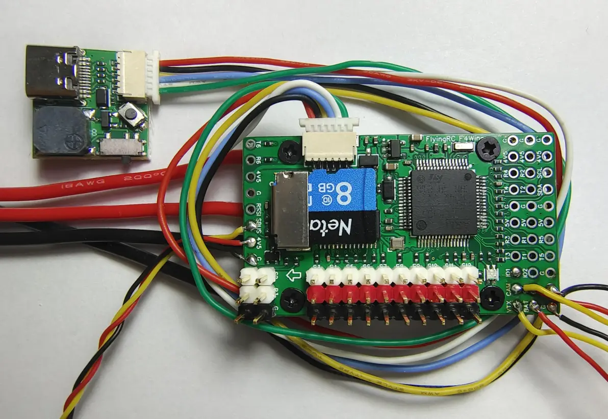在固定翼FPV体系里,Ardupilot是目前开源固件方案中,稳定性最高、调参逻辑清晰、设备兼容性强、全球共同参与玩家最多的、飞行体验最优秀的开源固件平台。 本文旨在针对新手玩家对Ardupilot调参逻辑的梳理,指导使用FlyingRC F4Wing MK5飞控安装到一台固定翼FPV载机的调参全过程。 设备选择: 固定翼载机 推荐主流选择:双发前拉动力的 大白鲨、肥翁、龙2(翼展110~120cm,起飞重量1200g~3000kg),单发尾推飞翼机型 ARWING、御猫、海豚、等小翼展(80~90cm),小胖子等长续航机型。 遥控器 推荐选择基于OpenTX、EdgeTX开源系统的遥控器(Jumper ,RadioMaster , Frsky,黑羊tango等),高频头增程系统选择开源的ELRS 2.4G/915Mhz的高频头和接收机,或者SBUS+数传一体化的思翼 FM30高频头+思翼FR接收机 摄像头及图传 传统5.8G模拟图传及摄像头选择完全看玩家选择,模拟摄像头可考虑 贝壳BAYCK 酷爱EH1、Caddx 平头哥2代,Foxxer无牙崽2代。 图传发射可选就多了,熊猫5804系列,TANK RUSH大功率等等。而且图传距离效果与飞行环境以及高度,图传接受屏幕的灵敏度,接收天线增益等因素,都有很大关系,本人用渣渣600mw的山寨图传,都飞出20km直线距离,高度1000m的画面有些雪花。 高清数字图传 考虑使用DJI高清数字图传(需搭配DJI大疆高清眼镜V1/V2),原厂天空端2天线带1080p卡录(使用非DJI原厂摄像头只能720P卡录),有效距离远。Vista天空端体积小单天线,搭配的天空端摄像头有原厂摄像头(视角窄,白天色彩好,高帧率),Caddx极光pro摄像头(夜视效果好,色彩艳丽),星云Pro,Runcam 凤凰HD。大疆高清目前没人飞出超过13.3Km,据说是DJI在底部程序代码的距离墙限制。最新加入的阿凡达avatar天空端+SE接收端也是不错的选择,本文也有关于该天空端的使用设置提示。 动力电池 根据不同载机及不同玩家的经验,推荐使用4~6S 18650/21700 多组并联的电池,容量大,放电倍率足够固定翼FPV使用,保养方便。 双发固定翼推荐: 载机:大白鲨空机/肥翁空机/龙2 电机:4S动力推荐使用 2207/2306-1450KV电机,6S重载动力推荐使用2216-980KV电机 电调:4S动力好赢乐天20A,6S重载动力推荐使用好盈40A 舵机:PTK 7452 9克数码舵机 4个。 飞控: FlyingRC F4Wing MK5 GPS模块:BN280 北田280(固定翼不需要带罗盘)或者其他GPS模块(价格20~100不等) 电池:4S 2~3P 21700 9000~13500ma,6S 2P 21700 9000ma 螺旋桨:4S 动力使用7040 3叶正反桨 ,6S重载动力使用8060正反桨 单发尾推飞翼布局推荐: 载机:ARWING空机/海豚空机/御猫空机 电机:2207/2306-1950KV电机 御猫推荐使用2807-1300KV 电调:飞盈佳乐35A 舵机:PTK 7452 9克数码舵机 2个。 飞控: FlyingRC F4Wing MK5 GPS模块:BN280 北田280(固定翼不需要带罗盘)或者其他GPS模块(价格20~100不等) 电池:4S 21700 4500ma /4S 2P 18650 6000ma/ 6S 2P 21700 9000ma 螺旋桨:51466穿越机桨,御猫推荐使用9*6桨 飞控介绍: FlyingRC F4Wing MK5 飞控,使用飞控+电源BEC板双层设计,使用STM32F405RGT6主控芯片,ICM42688加速计陀螺仪芯片,SPL06气压计芯片,内置OSD。 6路UART串口,12路PWM信号输出,1路SDA I2C并行外设接口,2路IO扩展,支持双BL32/AM32专属接口,支持串口回传电调数据。 板载3路BEC,舵机BEC(5V,6.2V,7.4V) 支持高压舵机最高10A持续电流,瞬间20A电流。 5V BEC可持续5A输出,瞬间6A,满足串口外设5V设备供电需求。 9V BEC持续3A输出,满足大功率图传发射供电需求。 电流计支持持续100A瞬间220A,外置USB小板预置蜂鸣器及boot按钮。 固件完全兼容Matek F405 TE 飞控的Ardupilot稳定版固件
