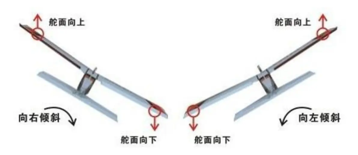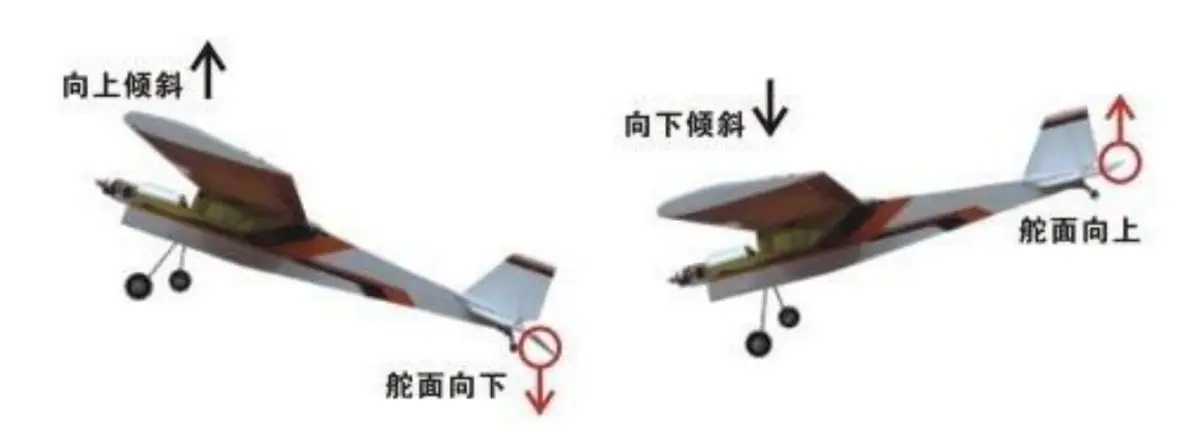 水平尾翼检查也是一样,机头向下,则水平尾翼向上修正水平姿态。如下图