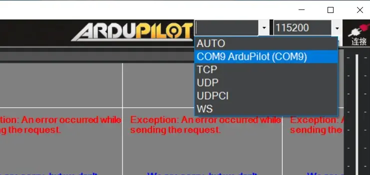 串口设置如下: GPS模块设置 SERIAL1_BAUD 38 SERIAL1_OPTIONS 0 SERIAL1_PROTOCOL 5 2:使用ELRS接收机+GPS模块+模拟5.8G图传摄像头。 GPS模块接在 GND 5V+ TX1 RX1 (即UART1端口,对应Serial1串口,GPS TX接飞控RX1,GPS RX接飞控TX1) ELRS接收机接在 GND 5V+ TX3 RX3 (即UART3端口,对应Serial2串口,接收机 TX接飞控RX3,接收机 RX接飞控TX3) 串口设置如下: GPS模块设置 SERIAL1_BAUD 38 SERIAL1_OPTIONS 0 SERIAL1_PROTOCOL 5 ELRS接收机设置 SERIAL2_BAUD 115 SERIAL2_OPTIONS 0 SERIAL2_PROTOCOL 23 RC_PROTOCOL 9 3:使用ELRS接收机+GPS模块+DJI大疆高清数字天空端 GPS模块接在 GND 5V+ TX1 RX1 (即UART1端口,对应Serial1串口,GPS TX接飞控RX1,GPS RX接飞控TX1) ELRS接收机接在 GND 5V+ TX3 RX3 (即UART3端口,对应Serial2串口,接收机 TX接飞控RX3,接收机 RX接飞控TX3) DJI大疆高清数字天空端接在 9V+ GND TX5 RX5 (即UART5端口,对应Serial3串口,天空端 TX接飞控RX5,接收机 RX接飞控TX5) 串口设置如下: GPS模块设置: SERIAL1_BAUD 38 SERIAL1_OPTIONS 0 SERIAL1_PROTOCOL 5 ELRS接收机设置: SERIAL2_BAUD 115 SERIAL2_OPTIONS 0 SERIAL2_PROTOCOL 23 RC_PROTOCOL 9 DJI天空端设置: SERIAL3_BAUD 115 SERIAL3_OPTIONS 0 SERIAL3_PROTOCOL 33 OSD_TYPE 3 4:使用思翼数传一体接收机+GPS模块+DJI大疆高清数字天空端 思翼接收机的SBUS接在 GND 5V+ SBUS GPS模块接在 GND 5V+ TX1 RX1 (即UART1端口,对应Serial1串口,GPS TX接飞控RX1,GPS RX接飞控TX1) 思翼数传接口 接在 TX3 RX3 (即UART3端口,对应Serial2串口,接收机 TX接飞控RX3,接收机 RX接飞控TX3) DJI大疆高清数字天空端接在9V+ GND TX5 RX5 (即UART5端口,对应Serial3串口,天空端 TX接飞控RX5,接收机 RX接飞控TX5) 串口设置如下: GPS模块设置 SERIAL1_BAUD 38 SERIAL1_OPTIONS 0 SERIAL1_PROTOCOL 5 思翼数传设置: SERIAL2_BAUD 57 SERIAL2_OPTIONS 0 SERIAL2_PROTOCOL 2 DJI天空端设置: SERIAL3_BAUD 115 SERIAL3_OPTIONS 0 SERIAL3_PROTOCOL 33 OSD_TYPE 3 5:使用ELRS接收机+GPS模块+Avarar 阿凡达 高清数字天空端 GPS模块接在 GND 5V+ TX1 RX1 (即UART1端口,对应Serial1串口,GPS TX接飞控RX1,GPS RX接飞控TX1) ELRS接收机接在 GND 5V+ TX3 RX3 (即UART3端口,对应Serial2串口,接收机 TX接飞控RX3,接收机 RX接飞控TX3) Avatar 阿凡达高清数字天空端接在 9V+ GND TX5 RX5 (即UART5端口,对应Serial3串口,天空端 TX接飞控RX5,接收机 RX接飞控TX5) 串口设置如下: GPS模块设置: SERIAL1_BAUD 38 SERIAL1_OPTIONS 0 SERIAL1_PROTOCOL 5 ELRS接收机设置: SERIAL2_BAUD 115 SERIAL2_OPTIONS 0 SERIAL2_PROTOCOL 23 RC_PROTOCOL 9 avatar阿凡达高清天空端设置 SERIAL3_BAUD 115 SERIAL3_OPTIONS 0 SERIAL3_PROTOCOL 42 OSD_TYPE 5 OSD1_TXT_RES 1 第三节:调参初步设置: 1:打开MissionPlanner调参软件。使用Micro USB数据线把飞控与电脑连接,在MP软件右上角选择飞控对应的端口(连接成功,端口显示突出Ardupilot),如下图: